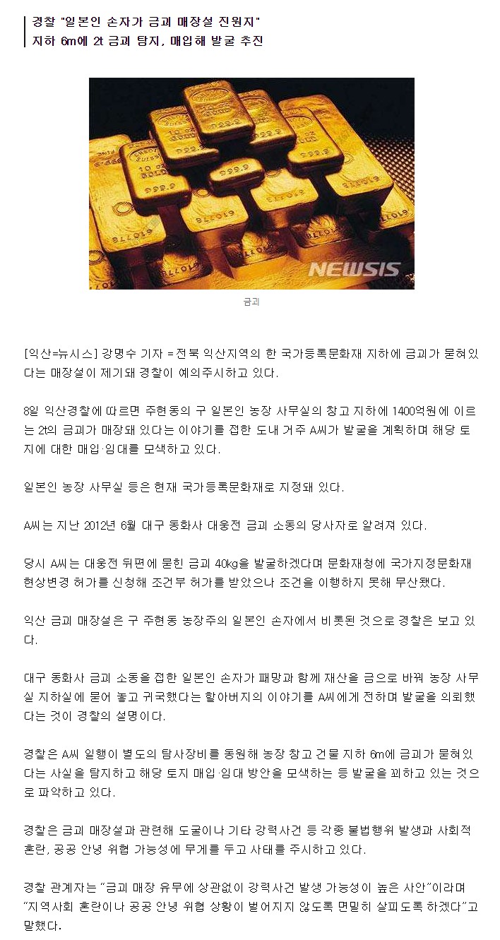 익산 옛 일본인 농장 창고 지하에 1400억대 금괴? 제네시스2021-03-08 11:30:41