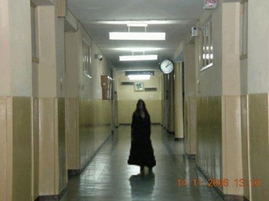 사진을 유심히 보면은 복도끝에 검은옷을 입은 여자가 서있는데 사람같지 않은 분위기를 품고 있다