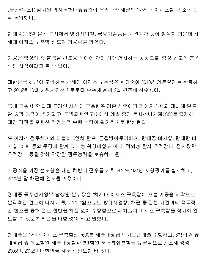 현대중공업 8100톤급 차세대 이지스 선도함 기공 카라이프2021-10-05 16:45:43