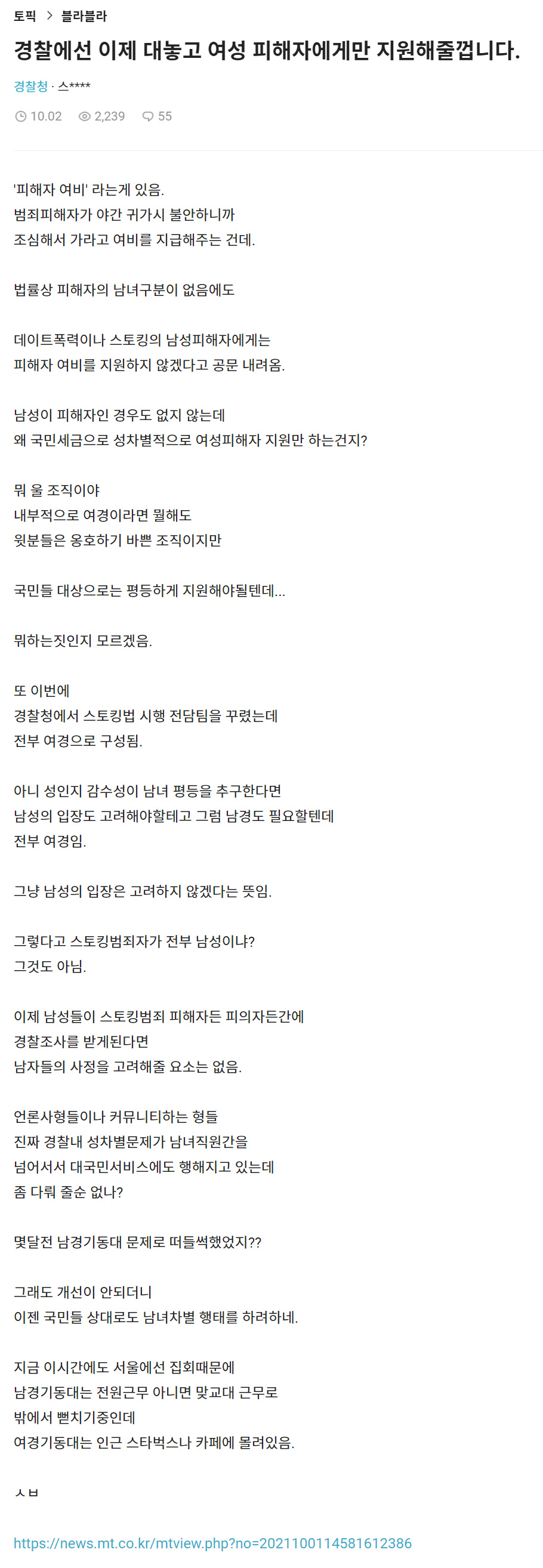 여성 피해자에게만 지원해줄껍니다