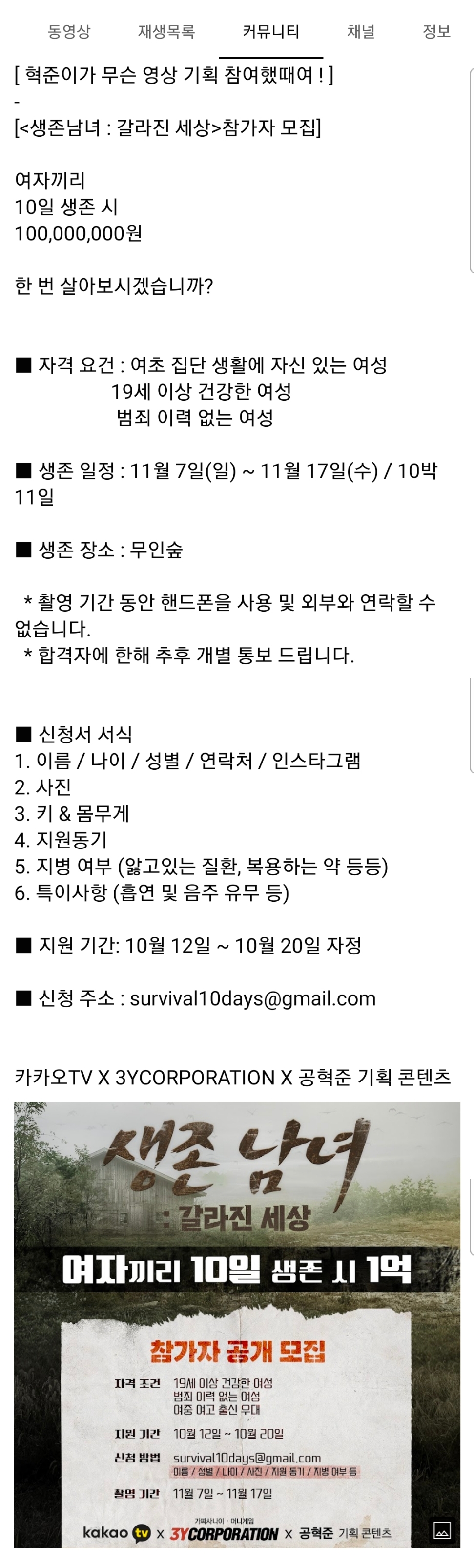 여자끼리 10일 생존시 1억