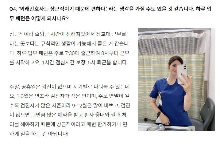 원래는 언니처럼 수술실 간호사를 지망했는데 영어 실력이 좋아서 외국인 검진 담당으로 추천됐다고 함