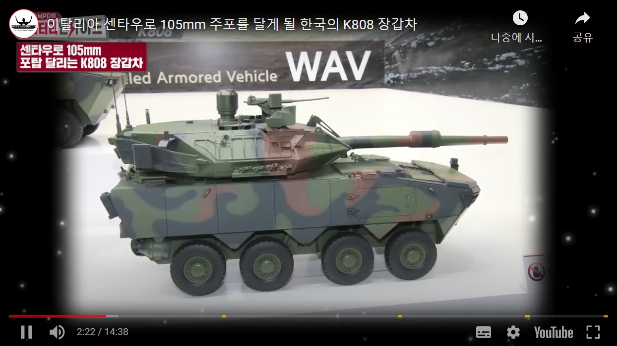 이탈리아 센타우로 105mm 주포를 달게 될 한국의 K808 장갑차