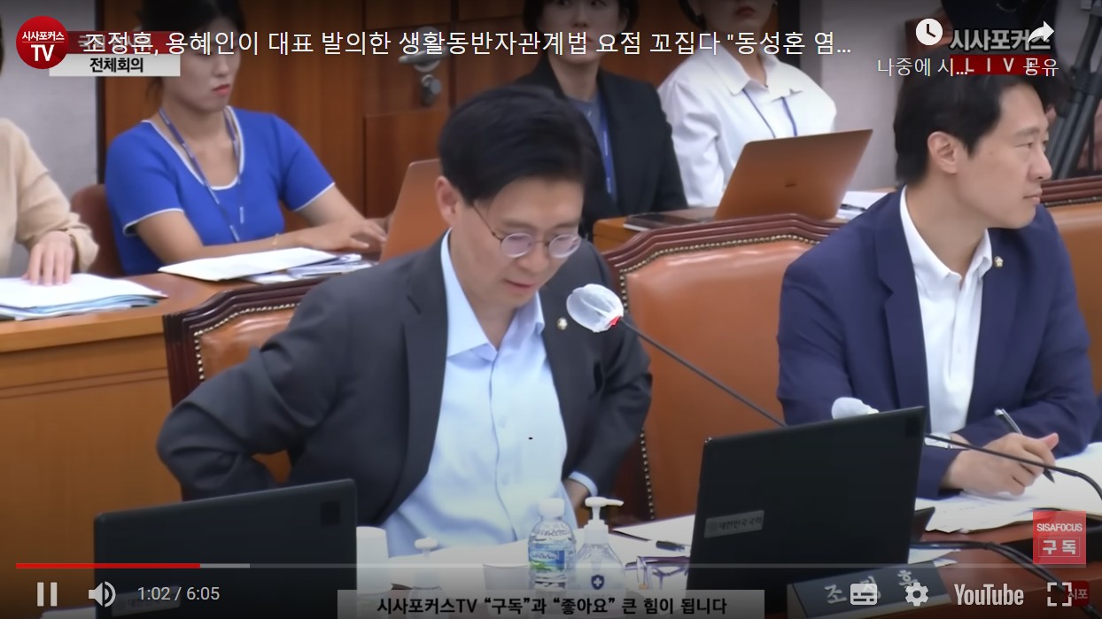 조정훈, 용혜인이 대표 발의한 생활동반자관계법 요점 꼬집다 "동성혼 염두에 두고 만든 법"