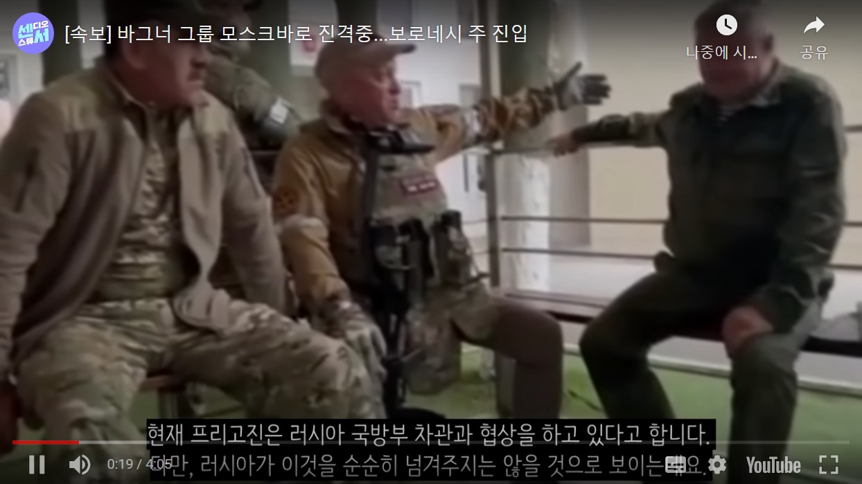 바그너 그룹 모스크바로 진격중...보로네시 주 진입