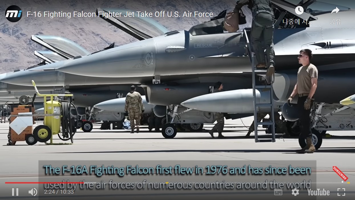 미 공군 F-16 파이팅 팔콘 전투기 이륙