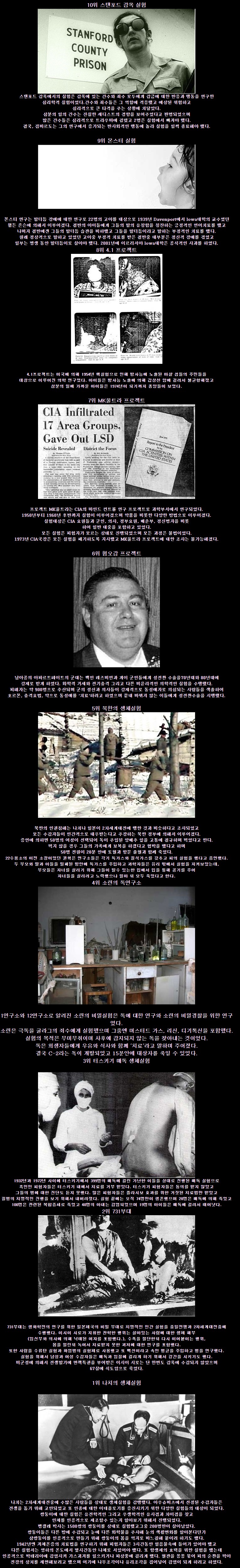 인류 역사상 최악의 생체실험 TOP 10