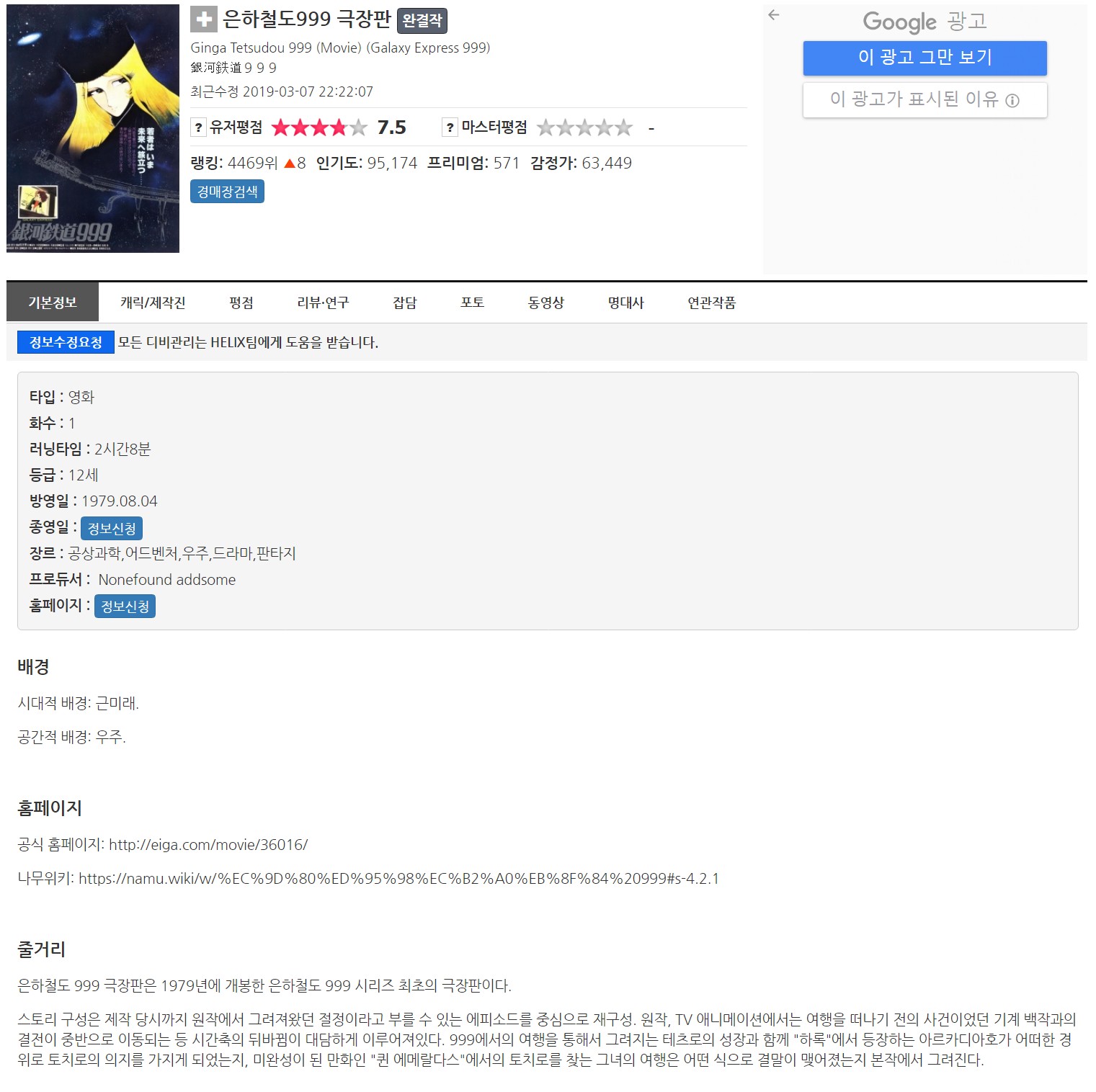 [극장판] 은하철도 999(1979)